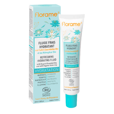 The HYDRATATION range combines the essential care products for fresh, radiating beauty skin. Resulting from Florame research, these expert formulas are adapted to different skin types and are a true source of intense and immediate hydration. The Organic Water Lily extract and the duo of medium and high molecular weight hyaluronic acids combine their virtues for visible efficacy, from the very first application. Thanks to the alliance of an exclusive complex of Organic Essential Oil* with floral and plant notes, the face is revitalized and protected from environmental damage.